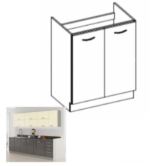 Alsó mosogató szekrény, szürke magas fényezéssel, PRADO 80 ZL 2F BB