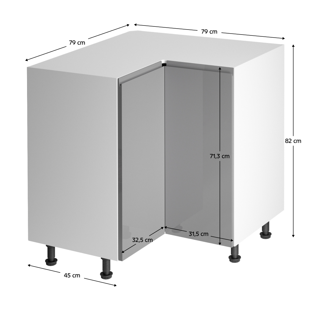 Alsó sarokszekrény, fehér/szürke extra magasfényű, AURORA D90N