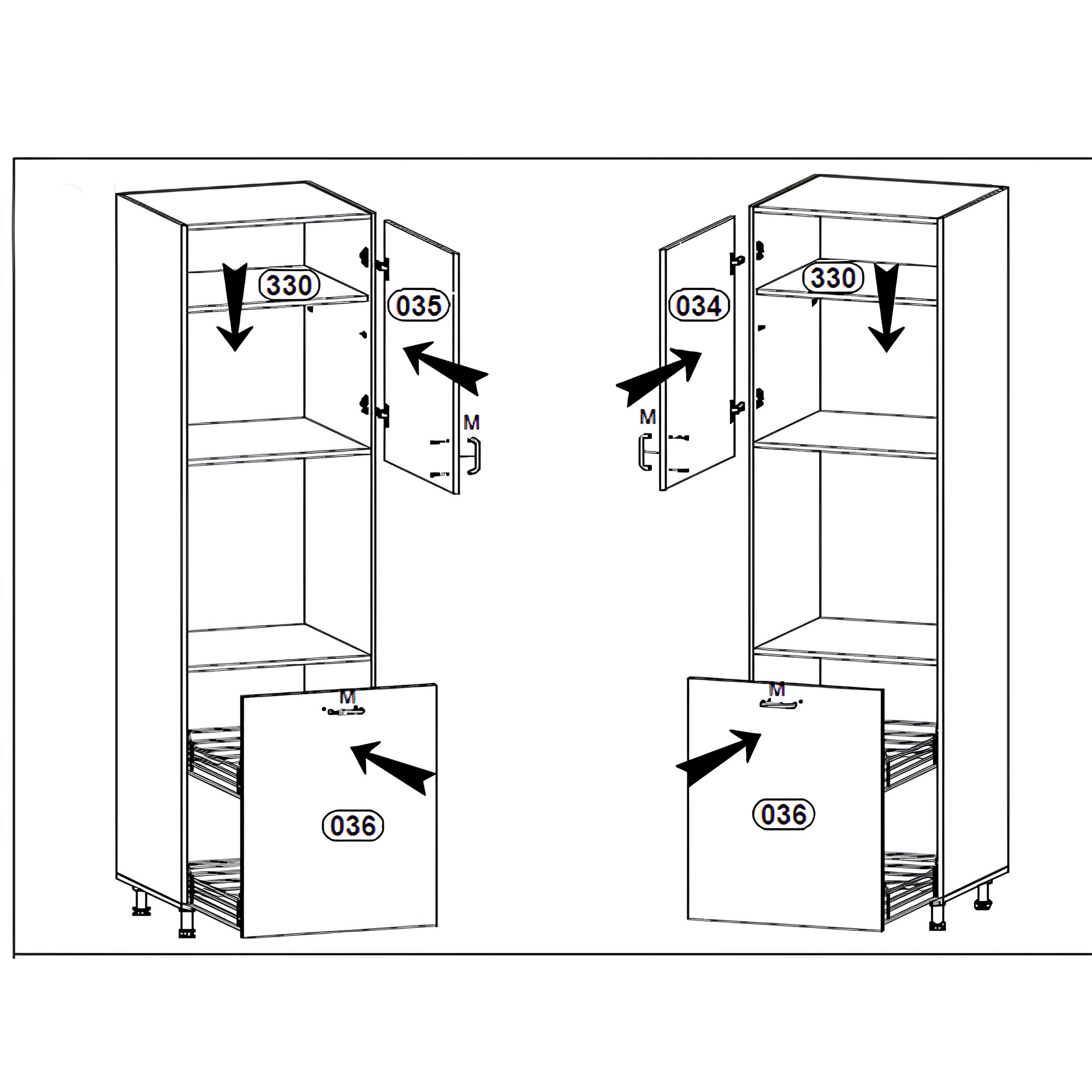 Élelmiszer szekrény, fehér/szürke extra magasfényű, bal, AURORA D60P