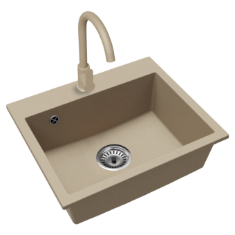 Gránit mosogató szifonnal, bézs, 58×49, SIVEN 55