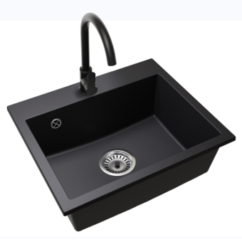 Gránit mosogató szifonnal, fekete, 58×49, SIVEN 55