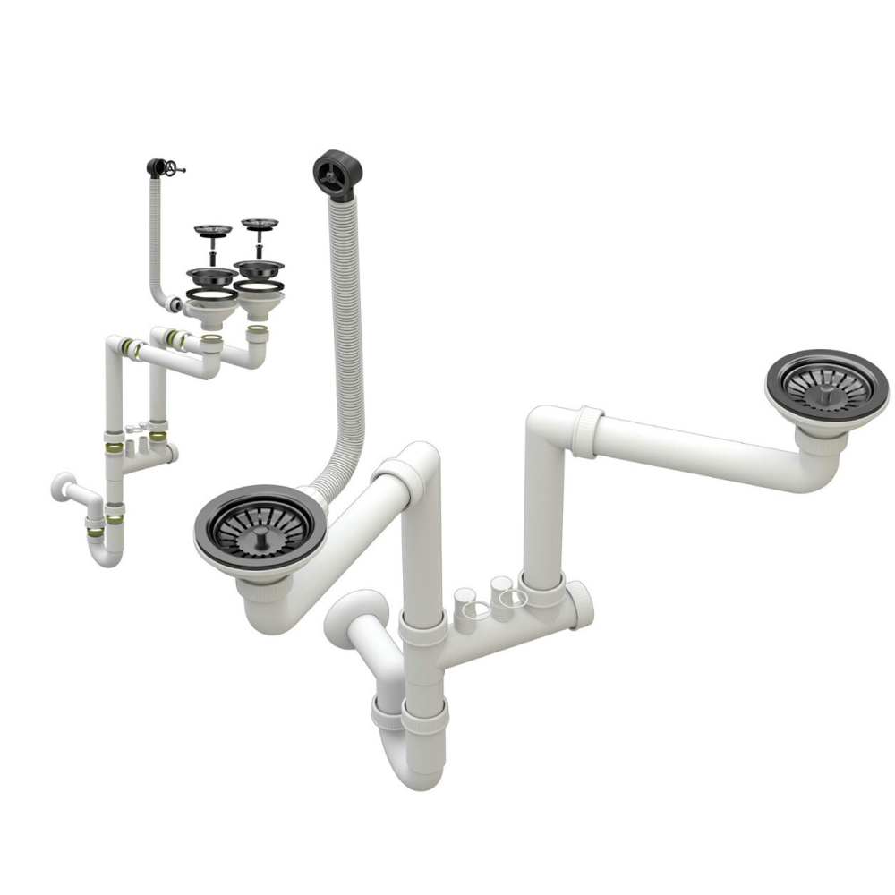 1x 2 kamrás króm szifon mosogatógép csatlakozással