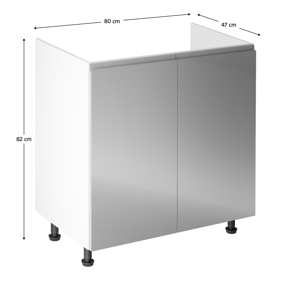 Mosogatószekrény, fehér/szürke extra magasfényű, AURORA D80Z